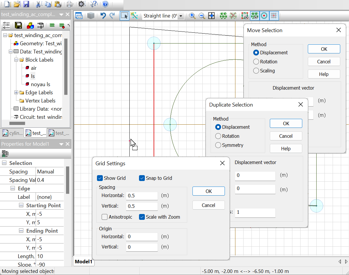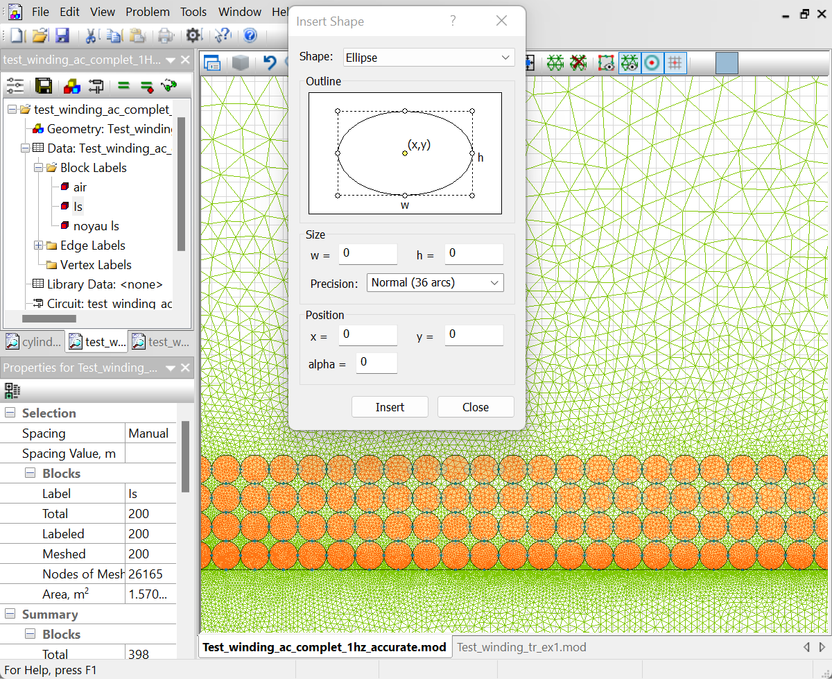 In the "Problem" view, you can edit the main options, as well as material properties, source fields and boundary conditions. The hierarchy shows the file names referenced by the issue. The data and libraries contain the list of names assigned to blocks ( blocks ), segments ( edges ) and points ( vertices ). The blocks, segments and points also define the geometry of the problem.