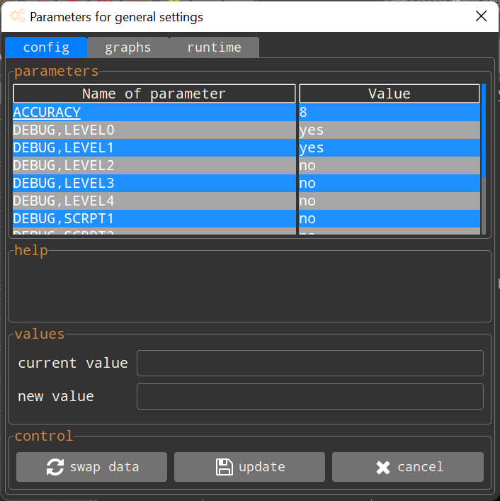 Die Einstellungen für jeden Visualisierungstyp wurden getrennt und befinden sich in einem sauberen Fenster. Unten sehen Sie als Beispiel das Fenster, das den Parametern für 2D-Diagramme gewidmet ist :